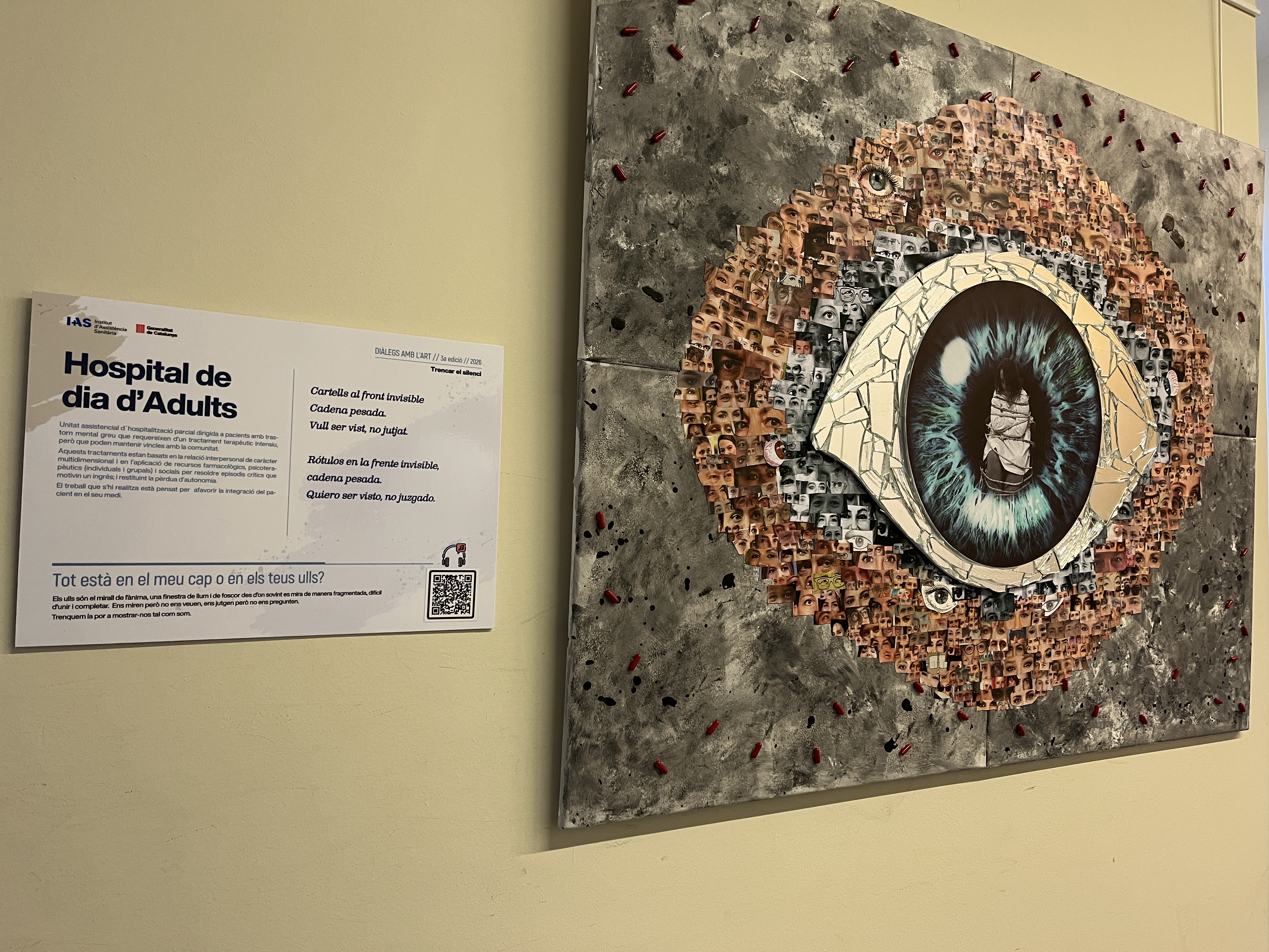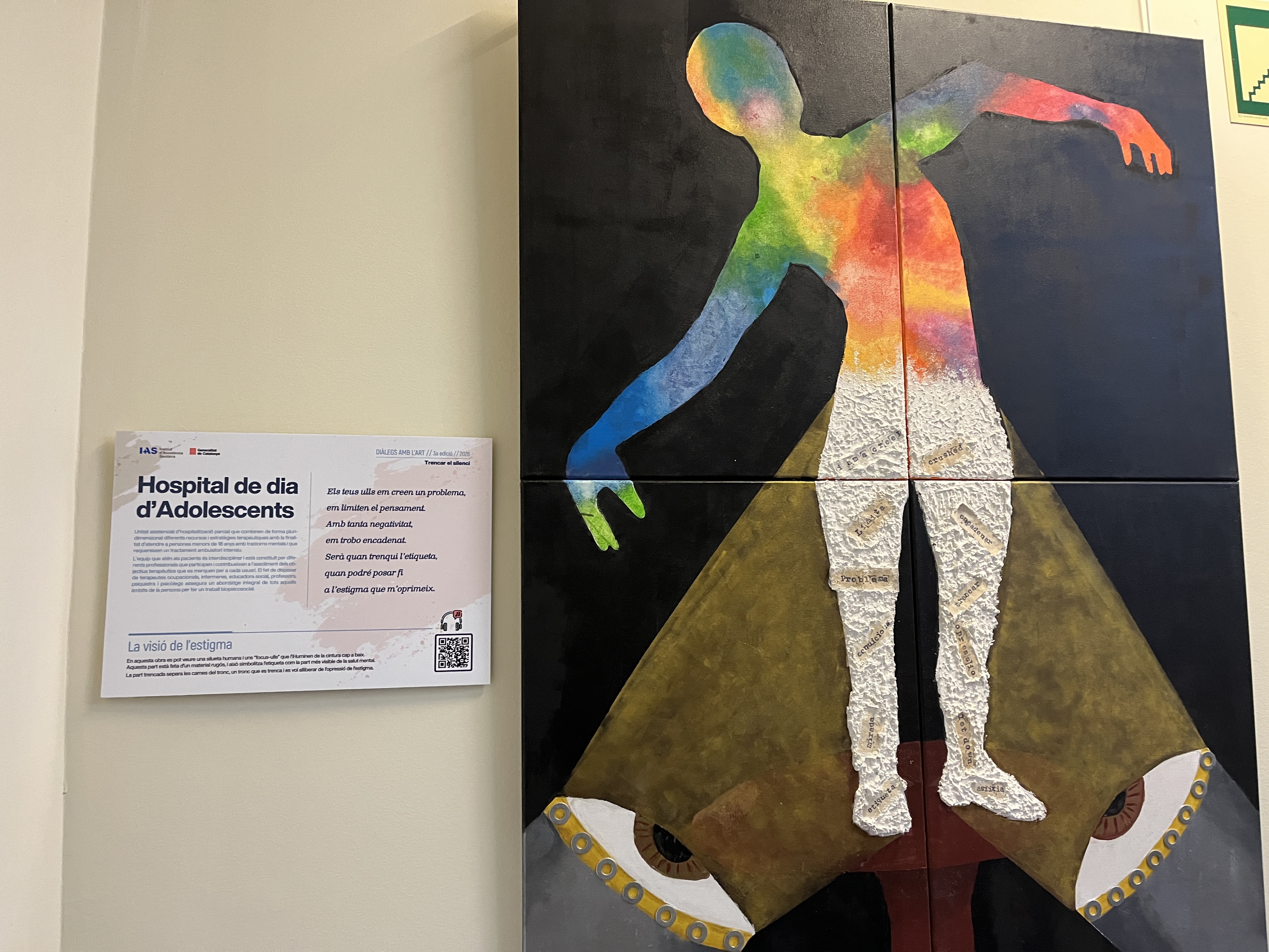 Avui, coincidint amb el Dia Mundial de l’Art, s’ha inaugurat a la Universitat de Girona, a la Sala de Graus de la Facultat d’Educació i Psicologia, la tercera edició de Diàlegs amb l’Art, titulada “Trencar el Silenci”. Aquesta edició destaca per abordar l’estigma en salut mental, posant l’accent en allò que sovint xiuxiueja: mirades que s’aparten, silencis que pesen i paraules que no es diuen.
